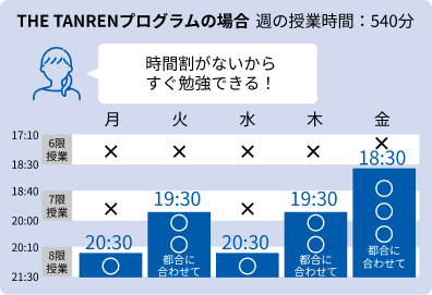 城南コベッツのTHE TANRENプログラムは、時間割に縛られずに勉強し放題の定額指導システムです。